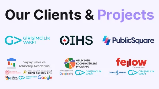 Google.org, Ministry of Trade (Republic of Türkiye) & Türkiye Entrepreneurship Foundation: We assisted with the NGO Empowerment Program for Cooperatives, a national initiative supporting cooperatives across the country. This project is one of the most significant efforts in cooperative empowerment in Türkiye.
